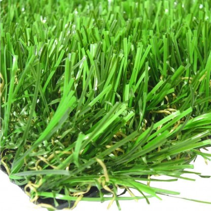 The grass consists of two shades of green. Lower down in the carpet are a light curly root zone in two shades to give the grass an upright position and create a feeling of last year's grass. Do not dressas with sand.